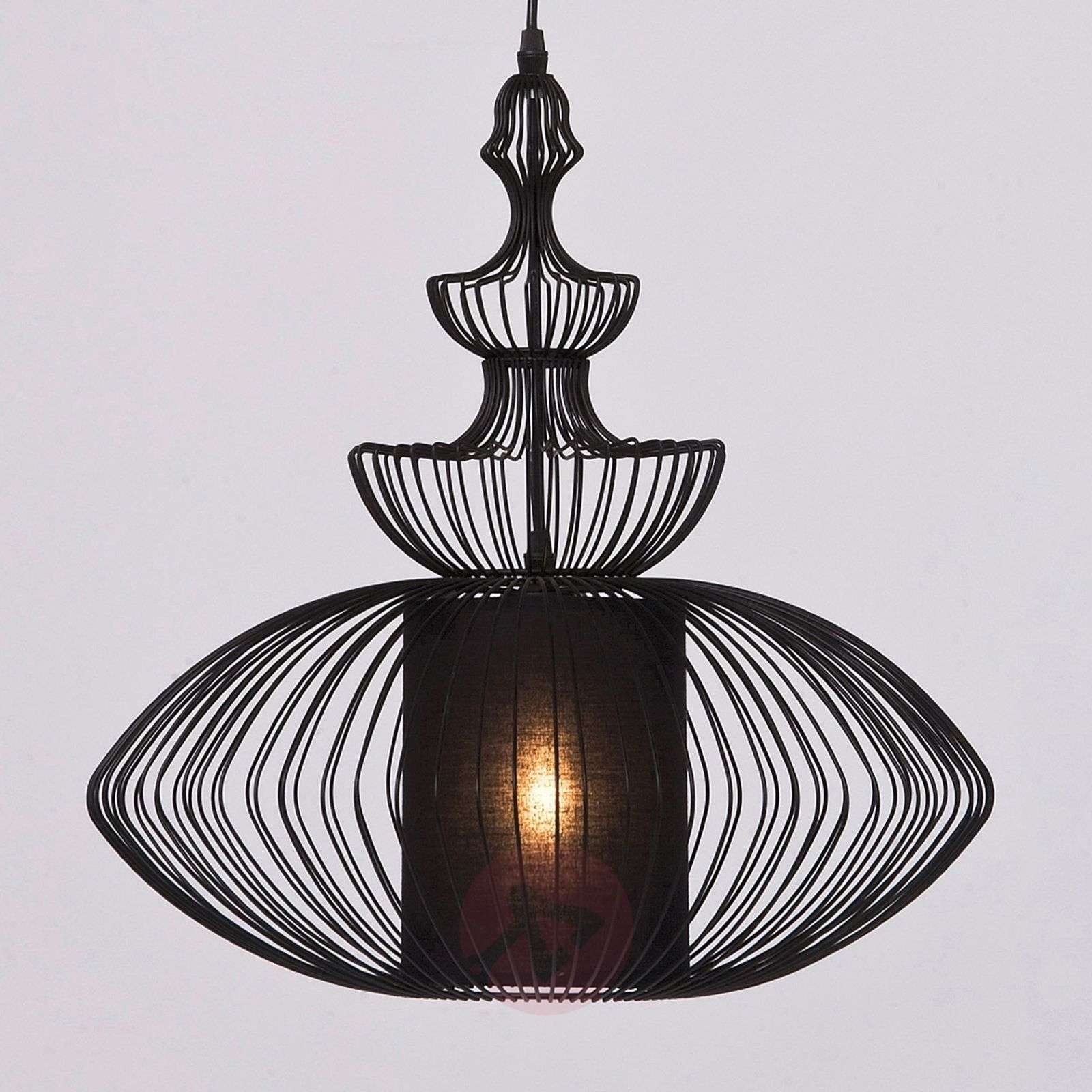 Unikalna lampa wisząca SWING IRON Ta lampa wisząca utrzymana przede wszystkim w odcieniu czerni może nie każdemu przypadnie do gustu, ale bez wątpienia charakteryzuje się wyjątkowym, ciekawym wyglądem. SWING IRON ma indywidualną formę i jest wykonana z dbałością o szczegóły. Liczne, metalowe pręty są tutaj kunsztownie powyginane i przebiegają łukiem od dołu w górę, tworząc łagodny owal. We wnętrzu metalowej konstrukcji znajduje się czarny cylinder z tworzywa, mieszczący w sobie żarówkę. Światło emitowane przez lampę SWING IRON nie jest zbyt jasne, lecz za to nastrojowe i romantyczne. Klasa efektywności energetycznej: A++