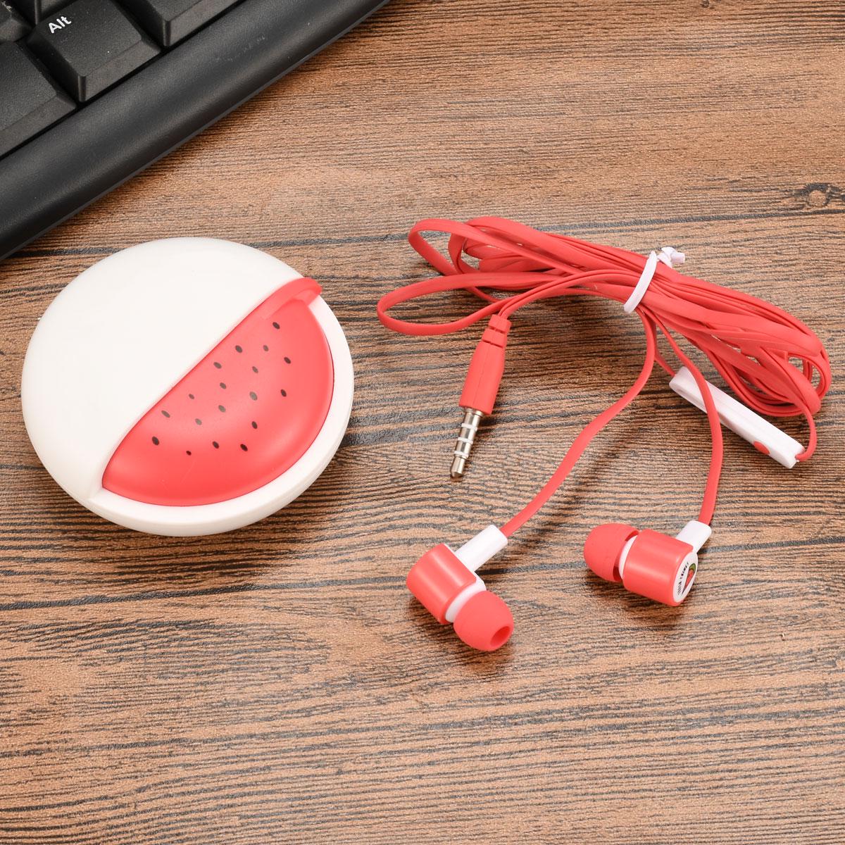 Owocowe słuchawki douszne 3,5mm z akumulatorem i pojemnikiem - truskawkowe