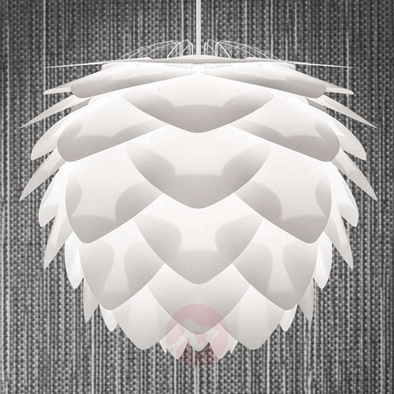 Atrakcyjnie zaprojektowana lampa wisząca Silvia z białym kloszem Lampa wisząca Silvia z białym kloszem w kształcie liści w połączeniu z wieloma stylami aranżacji wnętrz prezentuje się jako element bardzo przyciągający wzrok swym wyglądem. Trójkątne liście wykonane są z tworzywa sztucznego i się nie tłuką. Są one ułożone na zakładkę, co daje wygląd owocu dojrzewającego w południowym słońcu. Kojarzy się to z ciepłem i światłem, a wisząca lampa Silvia medium emituje teraz właśnie bardzo dużo ciepła i światła. Światło świeci w górę i w dół, jak również przez przestrzenie między liśćmi, tworząc niepowtarzalny efekt świetlny, który jest mile widziany w każdym pomieszczeniu. Duńska firma oświetleniowa UMAGE projektuje i produkuje estetyczne, funkcjonalne i dobrze wykonane lampy, rozwijając tym samym historię skandynawskiego designu. Producent skupia się również na zrównoważonym rozwoju swoich produktów. Klasa efektywności energetycznej: A++