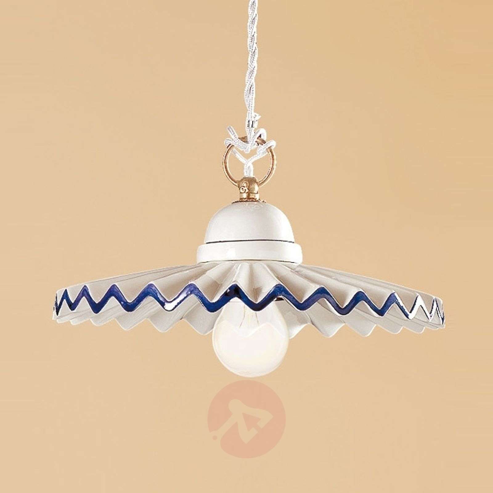 Lampa wisząca PIEGHE z ceramiki Lampa PIEGHE będzie wspaniałą lampą wisząca podkreślającą dworkowo-willowy wystrój kuchni lub jadalni. Jej rozłożysty klosz w falistym kształcie wykonany jest z ceramiki i pięknie prezentuje się ponad stołem, kierując strumień światła bezpośrednio w dół. Pięknym detalem podnoszącym walor dekoracyjny klosza jest krawędź w innym kolorze. Klasa efektywności energetycznej: A++