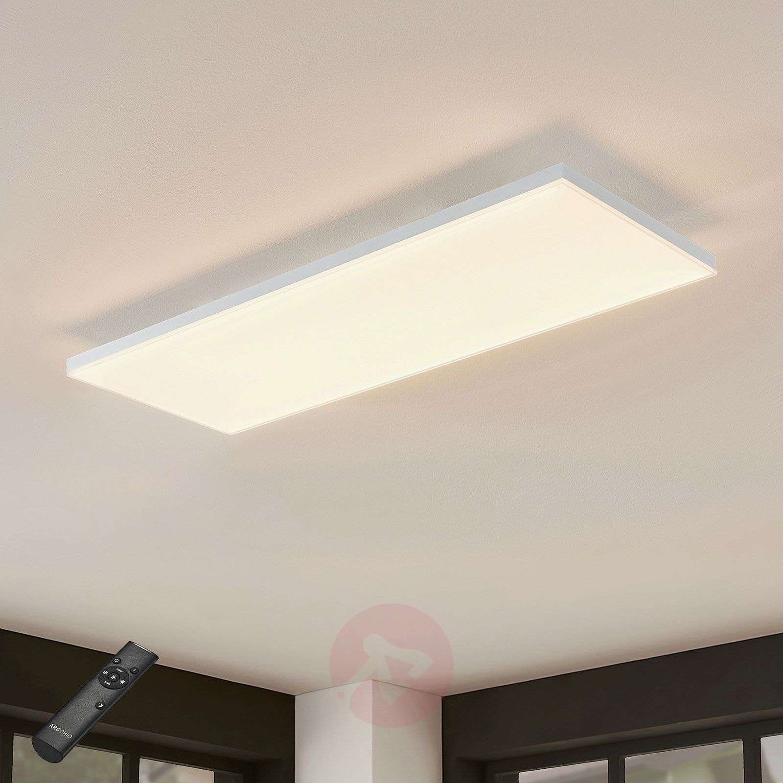 Z praktycznym pilotem na podczerwień i funkcjonalnym światłem: panel LED Blaan z konstrukcją bezramkową Podłużny, nowoczesny panel LED Blaan zapewnia efektywne oświetlenie niemal każdego pomieszczenia w mieszkaniu. Niezależnie od tego, czy panel jest zainstalowany w korytarzu, kuchni czy nawet w salonie, zapewnia niezawodne, nie oślepiające światło, które można ściemniać, a nawet regulować jego barwę światła. Do tego celu służy dołączony pilot na podczerwień, który reguluje jasność i barwę światła w dziesięciu stopniach. Blaan umożliwia ustawienie każdego odcienia, począwszy od ciepłej bieli skłaniającej do relaksu do chłodniejszej, uniwersalnej bieli zapewniającej komfort pracy. Możliwe jest także ustawienie lampki nocnej, która świeci stale na najniższym poziomie jasności i emituje ciepłe światło. Panel charakteryzuje się również bardzo wysoką jakością, bezramkową konstrukcją i doskonałym wykonaniem. Wygląda niemal tak, jakby lampa sufitowa swobodnie unosiła się w powietrzu, a dodatkowo powierzchnia lampy była oświetlona aż do ostatniego narożnika. Co więcej, Blaan został zaprojektowany tak, aby był szczególnie łatwy w montażu i zalicza się do lamp, które mogą być łatwo zamontowane na suficie nawet przez jedną osobę. Wysokiej jakości, bezśrubowy zacisk połączeniowy ze złączem wtykowym umożliwia wygodne, bezpieczne połączenie elektryczne. Klasa efektywności energetycznej: A