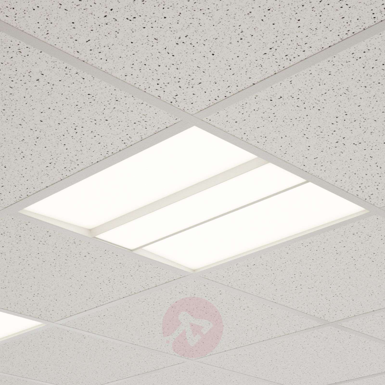 Kwadratowa oprawa rastrowa do zabudowy LED Malo z białą ramką i diodami LED o barwie uniwersalnej bieli, idealna do oświetlania miejsc pracy w biurach, 62 x 62 cm Ten panel LED, mający standardowej długości bok wynoszący 62 cm, przeznaczony jest do montażu w sufitach rastrowych, i charakteryzuje się wysoką jasnością i dobrą efektywnością energetyczną, ponieważ diody LED uchodzą za energooszczędne źródła światła. W tym przypadku mają one światło o barwie uniwersalnej bieli, idealnie sprzyjające pracy wymagającej koncentracji. Dlatego też panel ten doskonale nadaje się jako element wyposażenia biur i gabinetów do pracy. Biały dyfuzor sprawia, ze światło przedostaje się do otoczenia jako delikatne i nie powodujące efektu oślepienia. Metalowa rama ma barwę prostej i ponadczasowej bieli i może być na różne sposoby wkomponowana w wystrój biur i pomieszczeń komercyjnych. - do montażu w sufitach rastrowych - UGR - idealna do użytku w miejscach pracy i na stanowiskach komputerowych - biała metalowa rama (RAL 9016) Klasa efektywności energetycznej: A+