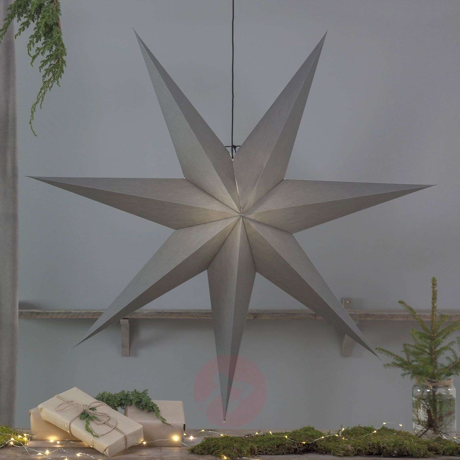 Szara papierowa gwiazda Ozen - dyskretna ozdoba świąteczna na okno Ta siedmioramienna gwiazda z papieru o harmonijnym wyglądzie pod względem kształtu i koloru pasuje do najróżniejszych wariantów wyposażenia wnętrz. Czy to przed oknem, czy też swobodnie zawieszona w pomieszczeniu - na przykład na belce - papierowa gwiazda Ozen wszędzie zapewnia nastrojowy akcent świetlny i optymalny nastrój świąteczny. Lampa jest wyposażona w oprawkę E14. Gwiazda jest zasilana energią przez długi, czarny kabel tekstylny z wtyczką. Żarówki nie są zawarte w zestawie (dostępne w dziale „Akcesoria dodatkowe”). Klasa efektywności energetycznej: A++