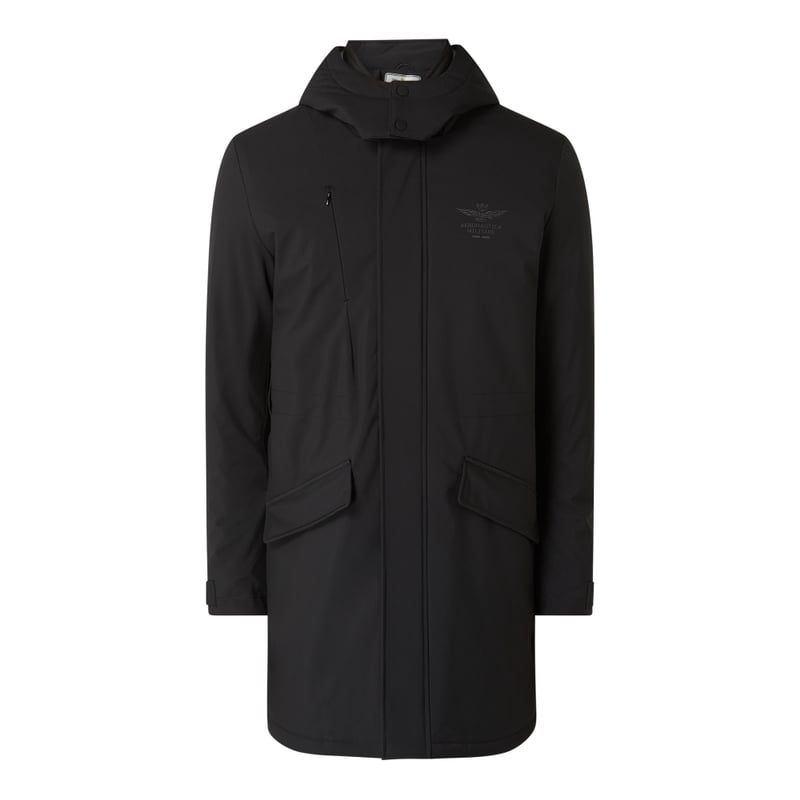 Parka męska Aeronautica Militare, Wytrzymały materiał , Prosty krój , Stójka z odpinanym kapturem, Kryty zamek błyskawiczny dwustronny z plisą zapinaną na zatrzaski , Mankiet z patką zapinaną na rzep, Kieszenie z patką, Nadruk z logo , Watowanie , Długość tyłu w rozmiarze 50: 91 cm , Szerokość ramion w rozmiarze 50: 47 cm , Długość rękawa w rozmiarze 50: 68 cm