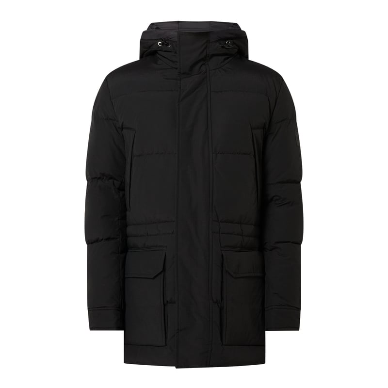 Parka męska BOSS, Mieszanka bawełny , Prosty krój, Pikowanie , Kaptur z tunelem, Zamek błyskawiczny z plisą na rzep, Kieszenie na piersi , Kieszenie z patką , Wypełnienie kaczym puchem i pierzem, Długość tyłu w rozmiarze 50: 83 cm, Szerokość ramion w rozmiarze 50: 48 cm, Długość rękawa w rozmiarze 50: 69 cm