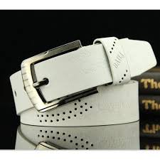 Pasek męski - skórzany - w stylu retro - biały