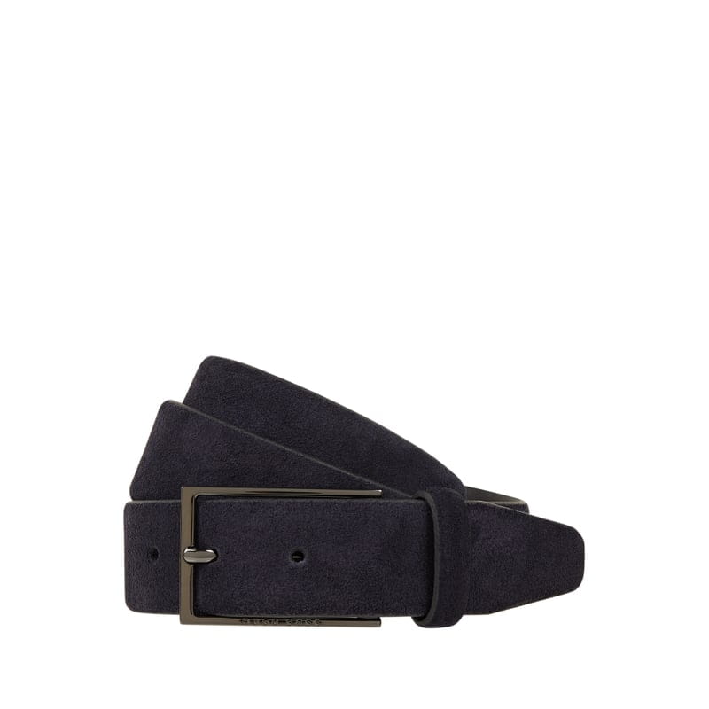 Pasek męski BOSS , Naturalna skóra welurowa , Sprzączka , Logo , Zamocowana szlufka , Szerokość paska: 3,5 cm