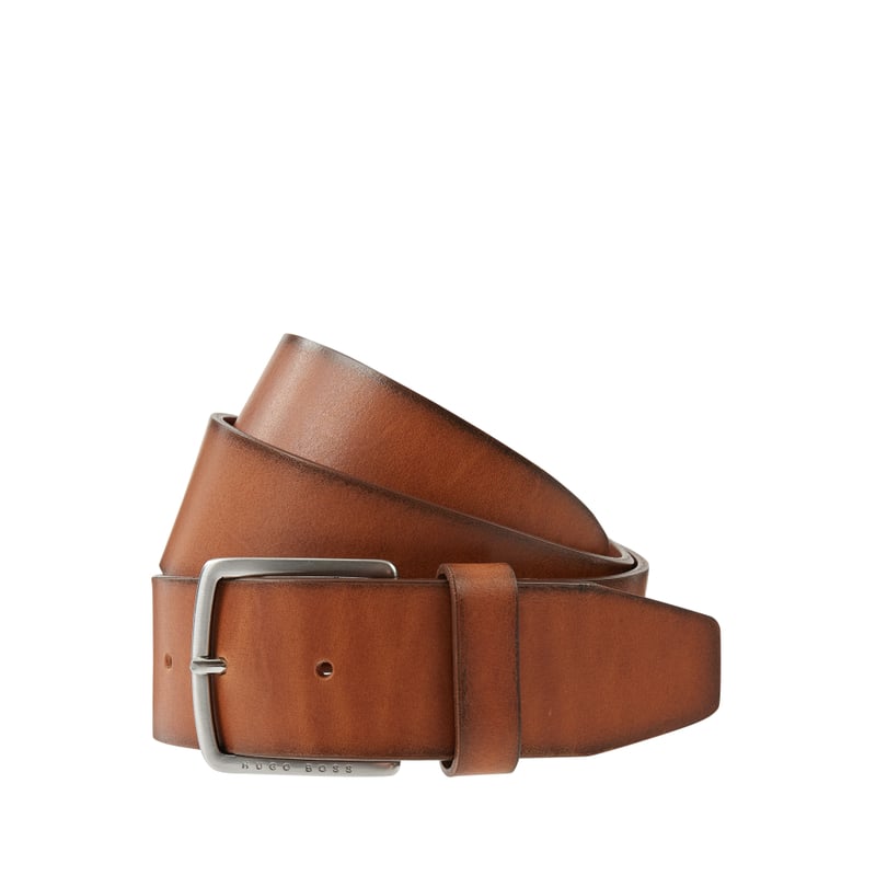 Pasek skórzany męski BOSS , Skóra naturalna, Sprzączka , Wytłoczone logo , Szlufka