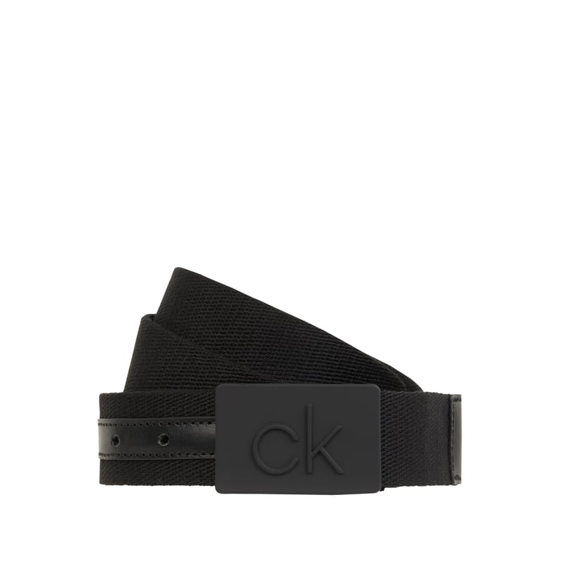 Pasek męski CK Calvin Klein, Wytrzymały materiał, Zapięcie zaciskowe z logo , Obszycie z imitacji skóry, Szerokość paska: 3,5 cm