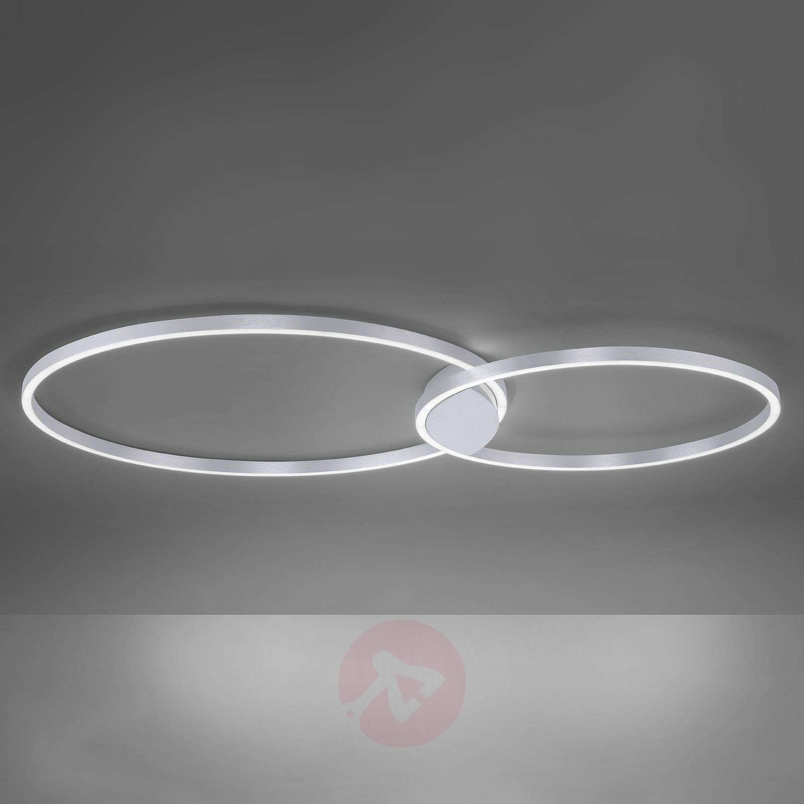 Zdalnie sterowana lampa sufitowa LED Q-Kate z dwoma pierścieniami Lampa sufitowa Q-Kate LED składa się z dwóch metalowych pierścieni o wyglądzie aluminium, na spodzie których umieszczono diody LED za matowym tworzywem sztucznym. Barwa światła od 2 700 do 5 000 K oraz moc światła są regulowane. Jest to możliwe po naciśnięciu przycisku na dołączonym pilocie lub poprzez sterowanie głosowe z systemem Amazon Echo Plus lub Echo Show (2 generacji). Za pomocą ZigBee Bridge i WLAN, Q-Kate można w pełni zintegrować z systemami Smart Home lub obsługiwać przez aplikację. Dane techniczne/Kompatybilność: - możliwość ściemniania - temperatura światła regulowana w zakresie od ciepłej bieli do uniwersalnej bieli - funkcja pamięci - przełączanie do 20 pojedynczych lamp Q lub żarówek Q w maksymalnie 3 grupach za pomocą tylko jednego pilota Q - przystosowana do ZigBee - sterowanie za pomocą pilota - możliwe bezpośrednie sterowanie głosowe poprzez Echo Plus i Echo Show (2 generacja) - po zintegrowaniu z systemem Smart Home opartym na ZigBee, możliwość łatwego sterowania za pomocą aplikacji Uwaga: do podłączenia do systemu Smart Home lub sterowania poprzez aplikację wymagany jest mostek; nie jest on zawarty w zakresie dostawy Klasa efektywności energetycznej: A+
