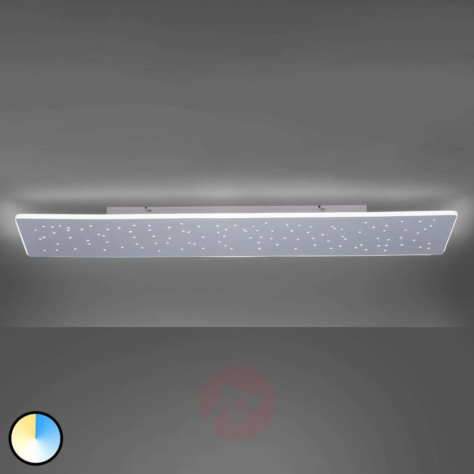 Migocząca lampa sufitowa LED Q-Nightsky - inteligentna w sterowaniu Lampa sufitowa LED Q-Nightsky składa się z płaskiej, kątowej szyby. Q-Nichtsky świeci nie tylko przez otwory na spodzie, które tworzą nastrojowe efekty, ale także przez całą powierzchnię z tworzywa sztucznego umieszczoną z boku szyby. Światło można regulować zarówno w zakresie jasności, jak i barwy światła w zakresie od 2 700 do 5 000 K, bezpośrednio za pomocą dołączonego pilota lub sterowania głosowego poprzez Amazon Echo Plus lub Echo Show (2 generacji). Integracja z Amazon Alexa i Google Home oraz konfiguracja sterowania aplikacją odbywa się poprzez ZigBee-Bridge i WLAN. Dane techniczne/Kompatybilność: - możliwość ściemniania - barwa światła regulowana w zakresie od ciepłej bieli do uniwersalnej bieli - funkcja pamięci - podłączanie do 20 pojedynczych lamp Q lub żarówek Q w maksymalnie 3 grupach za pomocą jednego pilota Q - przystosowana do ZigBee - sterowanie za pomocą pilota - możliwe bezpośrednie sterowanie głosowe poprzez Echo Plus i Echo Show (2 generacja) - po zintegrowaniu z systemem Smart Home opartym na ZigBee, możliwość łatwego sterowania za pomocą aplikacji Uwaga: Do podłączenia do systemu Smart Home lub sterowania za pomocą aplikacji wymagany jest mostek. Nie wchodzi on w zakres dostawy. Klasa efektywności energetycznej: A+
