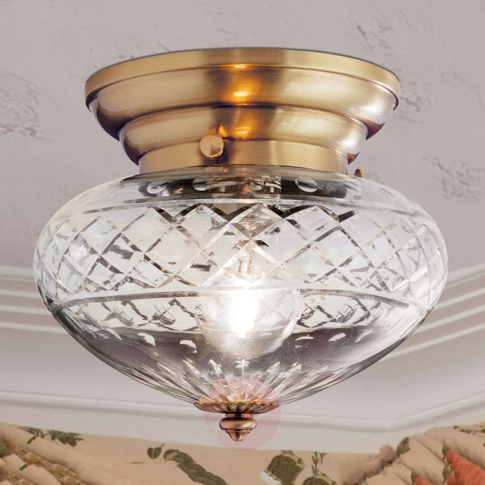Brązowana lampa sufitowa ENNA z ręcznie szlifowanym kloszem z przezroczystego szkła Przezroczyste szkło o ładnej strukturze, zdobione diamentowym szlifem oraz brązowana powierzchnia to elementy decydujące o stylu tej szlachetnej lampy sufitowej, która będzie pasowała do wszystkich mieszkań i domów urządzonych w stylu klasycznym. Baldachim w kolorze brązu przydaje lampie ENNA atrakcyjności i jest ekskluzywnym akcentem stylistycznym. Lampy te spełniają najwyższe wymagania w zakresie wysokiej jakości, elegancji i trwałości. Tutaj połączenie kreatywności projektantów i austriackiej sztuki rzemieślniczej pozwala na stworzenie produktów, znajdujących uznanie na arenie międzynarodowej. Od roku 1948 lampy tego producenta są wytwarzane w 100 % w Austrii, co gwarantuje dostępność części zamiennych przez długie lata. Na zapytanie dostępna także w innych rozmiarach i wykończeniach powierzchni. Klasa efektywności energetycznej: A++