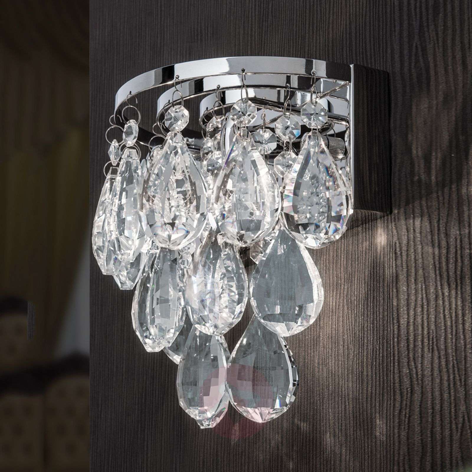 Lampa ścienna HELENE z kryształami K9 - mieniący się klejnot Wszystkim miłośnikom kryształowego blasku i przepychu mieniąca się lampa ścienna HELENE i niezwykła gra świateł, jaką generuje, przypadną bez wątpienia do gustu. Szkielet jest tutaj chromowany na wysoki połysk i przydaje tej lampie ściennej o nieco klasycznej emanacji nowoczesne akcenty. Niezwykły dodatek do wnętrz mieszkalnych urządzonych w każdym stylu! Klasa efektywności energetycznej: A++