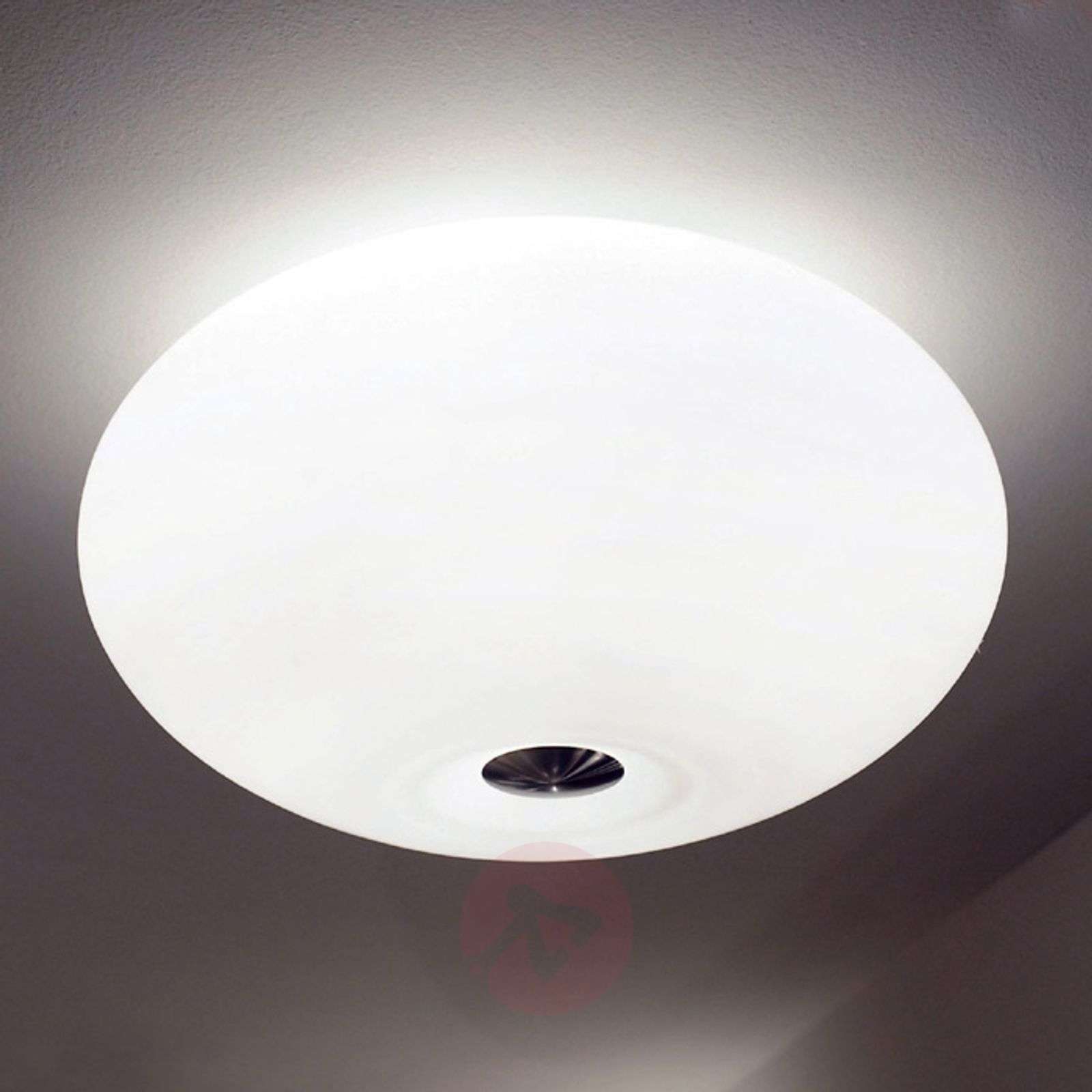 Lampa sufitowa AIH. Optymalne wymodelowanie pomieszczeń nasyconym światłem. Jakość Made in Germany! Wzornictwo AIH to ucieleśnienie prostoty, szczególnie interesujące dzięki lekkiej abstrakcji form. Lampa ta posiada kulisty, szklany klosz - zgodnie z tradycją dmuchany ustnie. Nawet jednak tak prosty kształt może być - jak się okazuje - uatrakcyjnieniem pomieszczenia. Unikalne jest tutaj lekkie wygięcie do wnętrza, znajdujące się w centrum klosza lampy. Zabarwienie środka lampy na kolor czarny jest jej dodatkowym, interesującym szczegółem, zaś zastosowanie matowego niklu w elementach konstrukcji zapewnia dodatek kolejnego wysokiej jakości materiału. Zastosowanie dwóch żarówek zamiast jednej wyklucza oślepianie, dzięki czemu rzucane cienie nie zakłócają nasyconego blasku emitowanego przez klosz a sama lampa jest idealnym elementem modelującym wnętrze. Klasa efektywności energetycznej: A++