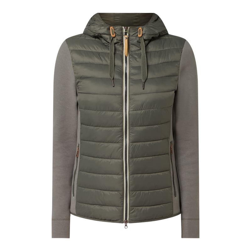 Kurtka pikowana damska camel active, Wytrzymały materiał , Prosty krój , Wstawki w kontrastowym kolorze , Stójka z regulowanym kapturem , Zamek błyskawiczny dwustronny , Kieszenie zapinane na zamek błyskawiczny, Pikowanie , Długość tyłu w rozmiarze 36: 63 cm, Szerokość ramion w rozmiarze 36: 41 cm, Długość rękawa w rozmiarze 36: 63 cm