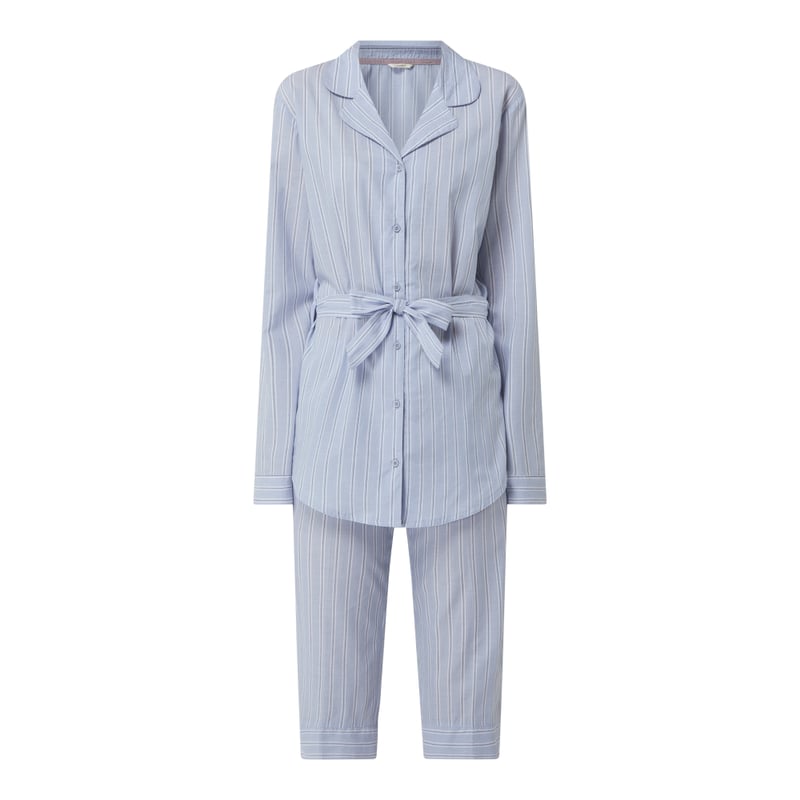 Piżama damska Esprit , Czysta bawełna ekologiczna , Prosty krój , Wzór w paski , Góra z kołnierzem rewersowym , Listwa guzikowa , Regulowana długość rękawa , Spodnie z elastycznym pasem , Długość 3/4 , Długość tyłu górnej części w rozmiarze 36: 78 cm , Długość rękawa w rozmiarze 36: 67 cm, Długość wewnętrzna nogawki w rozmiarze 36: 50 cm