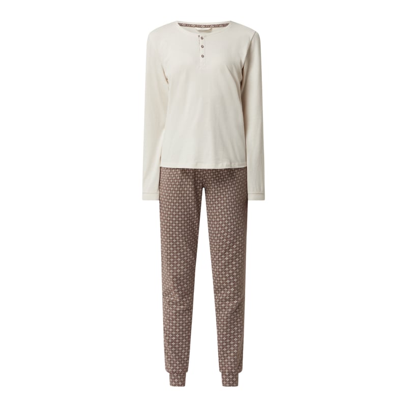 Piżama damska Esprit, Czysta bawełna , Prosty krój , Góra z okrągłym dekoltem , Krótka listwa guzikowa , Długie rękawy, Spodnie z wzorem na całej powierzchni , Elastyczny pas z tunelem , Długość tyłu górnej części w rozmiarze 36: 65 cm, Długość rękawa w rozmiarze 36: 62 cm , Długość wewnętrzna nogawki w rozmiarze 36: 79 cm