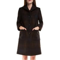 Bardzo ciekawy model płaszcza damskiego o zdobnych kieszeniach z delikatnym, kwiatowym haftem. Na uwagę zasługuje również oryginalne cieniowanie modelu, które sprawia, że będzie on doskonale komponował się z dużą ilością odcieni kolorystycznych szali i czapek, co daje możliwość tworzenia wielu unikatowych stylizacji. Optymalna długość nadaje sylwetce smukłości oraz skutecznie chroni przed zimnem. wykonany z wełny z domieszką poliestru, który korzystnie wpływa na trwałość modelu oraz zapobiega jego gnieceniu; model wykończony wykładanym kołnierzem; zapinany na guziki; posiada 2 otwarte kieszenie zewnętrzne; przybliżona długość całkowita wynosi 100 cm.