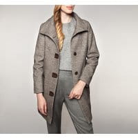Płaszcz damskiwykończony wykładanym kołnierzem. Teponadczasowe okrycie wierzchnie będzie stanowić niezawodną ochronę w chłodne dni dzięki doskonałej jakości wykonania. Neutralny kolor modelu umożliwi swobodne łączenie barw jesienno-zimowych akcesoriów. Płaszcz wyeksponuje atuty klasycznych zestawów, dodając całości wyjątkowego szyku. wykonany z najwyższej jakości materiałów; modelzapinany na cztery guziki; posiada dwie otwarte, głębokie kieszenie zewnętrzne obszyte skórzaną lamówką.