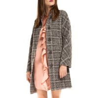 Płaszcz damski w kratkę to jedno z najbardziej modnych i ponadczasowych okryć wierzchnich dla stylowych kobiet. Świetnie komponuje się zarówno z miejskimi zestawami, jak i eleganckimi stylizacjami. Prosty, klasyczny fason sprawia, że jest on idealnym, ponadczasowym wykończeniem stroju i z pewnością posłuży przez długie lata zachowując nienaganny wygląd. wykonany z wełny z domieszką poliestru, który korzystnie wpływa na trwałość modelu oraz zapobiega jego gnieceniu; zapinany na guziki; wykończony kołnierzem; pzybliżona długość całkowita wynosi 94 cm.