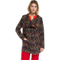Miękki płaszcz damskiWełniany płaszcz damskio miękkiej fakturze z wysokim kołnierzem, który może zastąpić szal, przyjemnie otuli i skutecznie ochroni przed niskimi temperaturami oraz wiatrem. Kiedy pogoda nie dopisuje, okrycie stanie się również remedium na ponurą aurę - kontrastowe połączenie kolorystyczne, w którym zostały zastosowane wyraźne, soczyste kolory z pewnością doda pozytywnej energii, a reszcie stylizacji fantazyjnego akcentu. model wykonany z najwyższej jakości wełny; zapinany na napy; wykończony wykładanym kołnierzem; posiada dwie otwarte zewnętrzne kieszenie.