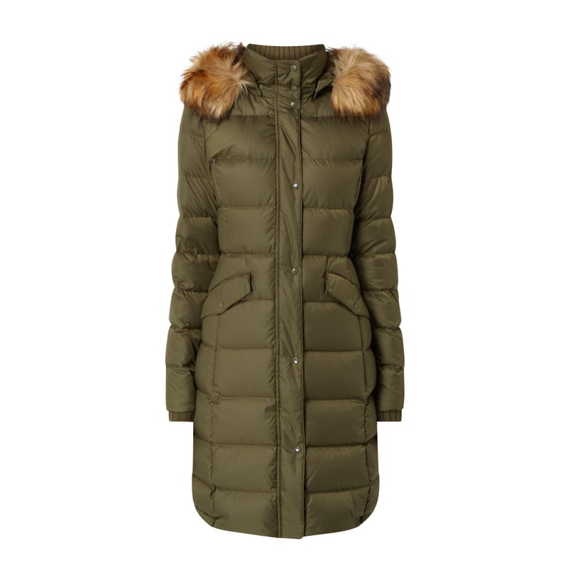Płaszcz puchowy damski MARC O'POLO , Mieszanka materiałów z dodatkiem wełny i streczu , Taliowany krój, Stójka i kaptur z odpinanym obszyciem ze sztucznego futra , Kryty zamek błyskawiczny z plisą zapinaną na zatrzaski , Dodatkowe mankiety , Kieszenie z patką zapinane na zatrzask , Pikowanie , Wypełnienie puchem i pierzem , Długość tyłu w rozmiarze 36: 94 cm, Szerokość ramion w rozmiarze 36: 39 cm, Długość rękawa w rozmiarze 36: 64 cm