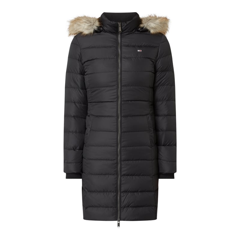 Płaszcz puchowy damski Tommy Jeans , Wytrzymały materiał , Taliowany krój, Kaptur odpinany z odpinanym sztucznym futrem, Zamek błyskawiczny dwustronny , Wpuszczane kieszenie, Naszywka z logo, Wypełnienie puchem i pierzem , Długość tyłu w rozmiarze S: 83 cm, Szerokość ramion w rozmiarze S: 39 cm, Długość rękawa w rozmiarze S: 62 cm