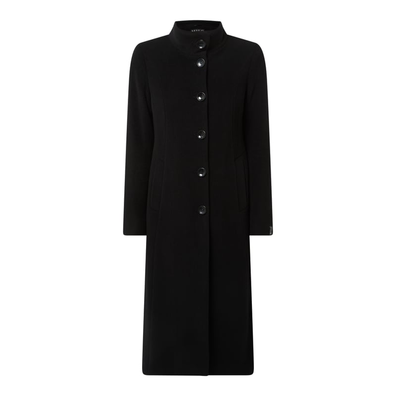 Płaszcz wełniany damski Milo, Mieszanka wełny z domieszką kaszmiru , Taliowany krój , Wykładany kołnierz , Listwa guzikowa , Wpuszczane kieszenie , Długość tyłu w rozmiarze 36: 119 cm, Szerokość ramion w rozmiarze 36: 39 cm, Długość rękawa w rozmiarze 36: 65 cm
