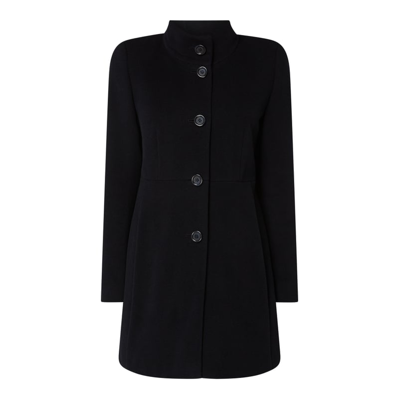 Płaszcz wełniany damski Fuchs & Schmitt, Mieszanka wełny z domieszką kaszmiru , Taliowany krój , Stójka , Listwa guzikowa, Wpuszczane kieszenie, Lekka podszewka, Made in Europe, Długość tyłu w rozmiarze 36: 85 cm, Szerokość ramion w rozmiarze 36: 38 cm, Długość rękawa w rozmiarze 36: 64 cm