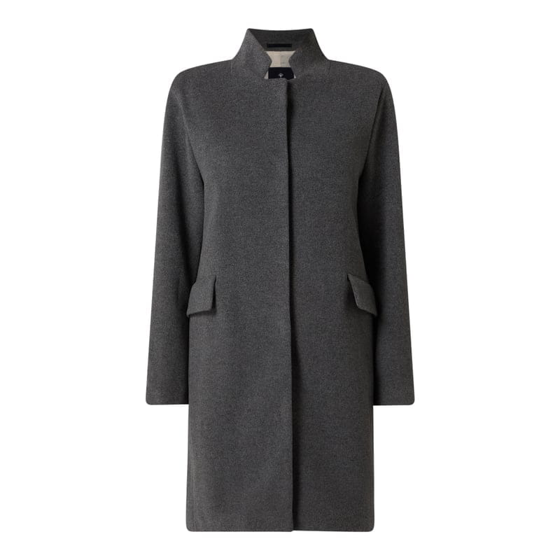 Płaszcz damski JOOP!, Mieszanka żywej wełny, Prosty krój, Stójka, Listwa z zatrzaskami , Kieszenie z patką, Rozporek, Made in Italy , Długość tyłu w rozmiarze 36: 97 cm, Szerokość ramion w rozmiarze 36: 41 cm , Długość rękawa w rozmiarze 36: 63 cm