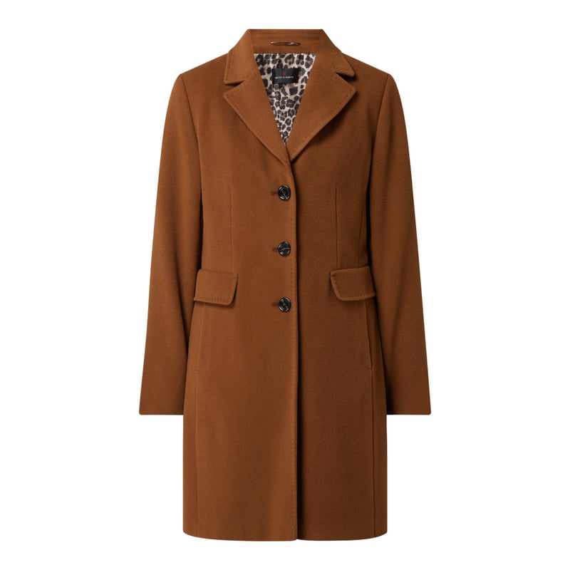 Damski płaszcz żakietowy Fuchs & Schmitt, Mieszanka wełny z domieszką kaszmiru , Taliowany krój , Kołnierz z połami , Listwa guzikowa , Wpuszczane kieszenie , Ozdobne patki , Guziki przy mankietach , Ręczne przeszycia krawędzi , Lekka podszewka , Made in Europe , Długość tyłu w rozmiarze 36: 94 cm, Szerokość ramion w rozmiarze 36: 40 cm, Długość rękawa w rozmiarze 36: 65 cm