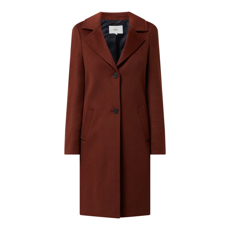 Płaszcz żakietowy damski s.Oliver RED LABEL, Mieszanka materiałów z dodatkiem wełny, bawełny i wiskozy , Prosty krój , Kołnierz z połami , Listwa guzikowa , Boczne wpuszczane kieszenie , Długość tyłu w rozmiarze 36: 97 cm, Szerokość ramion w rozmiarze 36: 41 cm, Długość rękawa w rozmiarze 36: 62 cm