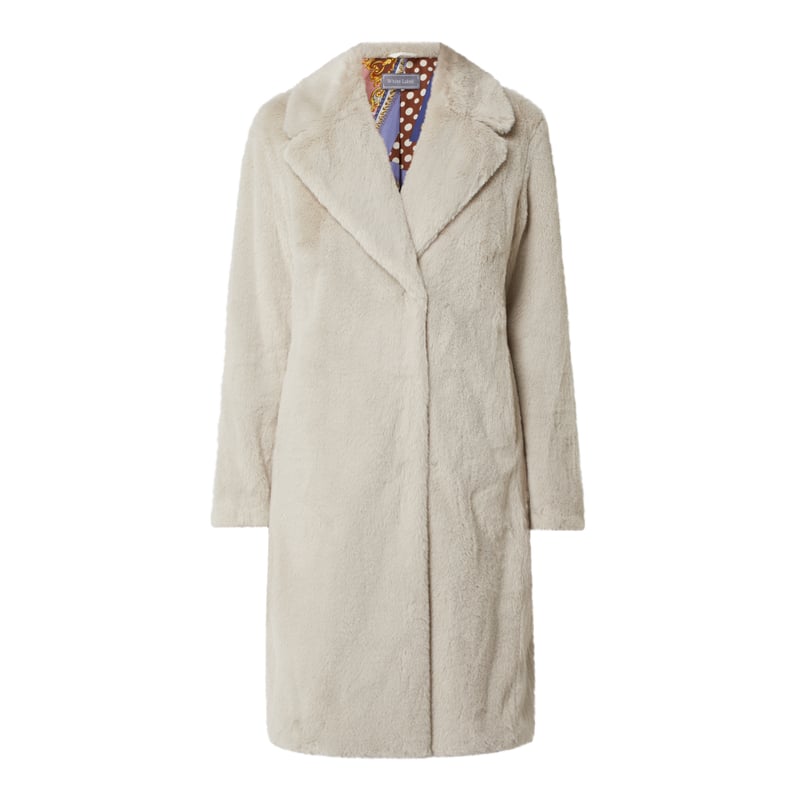 Płaszcz damski White Label , Sztuczne futro , Taliowany krój, Kołnierz z połami , Listwa z zatrzaskami , Wpuszczane kieszenie, Długość tyłu w rozmiarze 36: 108 cm, Szerokość ramion w rozmiarze 36: 45 cm, Długość rękawa w rozmiarze 36: 65 cm