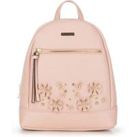 Plecak damski z kolekcjiYoungWśród kobiecych dodatków nie powinno zabraknąć takich, które podkreślają indywidualny styl ich właścicielki. Klasyczny plecak, wykonany zpoliuretanu o groszkowanej strukturze, został urozmaicony kwiatowymi ozdobnikami 3D, za sprawą których prezentuje się wielce oryginalnie. Model proponowany jest w dwóch ciekawych odcieniach:różowym oraz jasnobrązowym.Nasza rada: nieregularnie rozmieszczone, połyskujące nityw złotym kolorze, dają niepowtarzalny efekt. wykonany zeskóry ekologicznej; komora główna zamykana na suwak; wewnątrz kieszeń zamykana na suwakoraz otwarta kieszeń na drobiazgi; z przodu kieszeń zamykana na suwak; możliwość regulacji długości pasków.