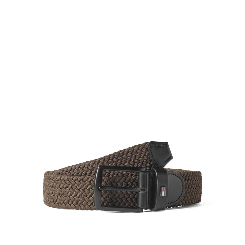 Pasek męski Tommy Hilfiger, Wytrzymały materiał, Efekt plecionki, Sprzączka, Aplikacja z logo, Szerokość: 3,5 cm