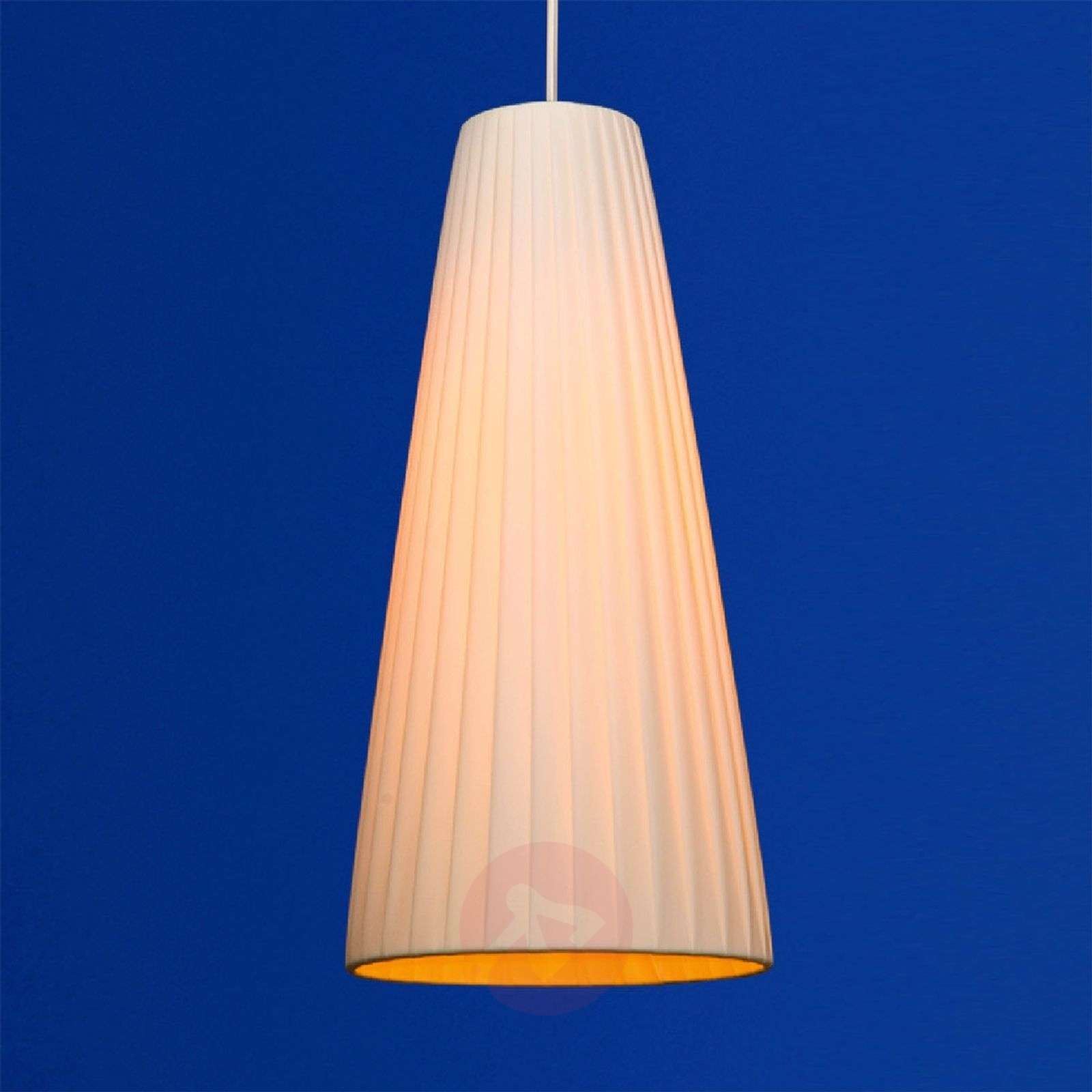 Lampa wisząca o stożkowym kształcie z kremowym plisowanym kloszem Lampę wiszącą Konte otacza prosta elegancja i ponadczasowy design. Wzbogaci wszelkiego rodzaju pomieszczenia, a dzięki kremowemu kloszowi z plisowanego materiału zapewni przyjemne, nieoślepiające światło, zanurzające otoczenie w gustownej atmosferze. Lampa roztacza swoje działanie nie tylko w pokoju dziennym, ale również w hotelu i innych obszarach gastronomicznych. Załączono żarówkę. Producent zaleca zastosowanie przyjaznych dla środowiska żarówek LED z oprawą E27. Klasa efektywności energetycznej: A++