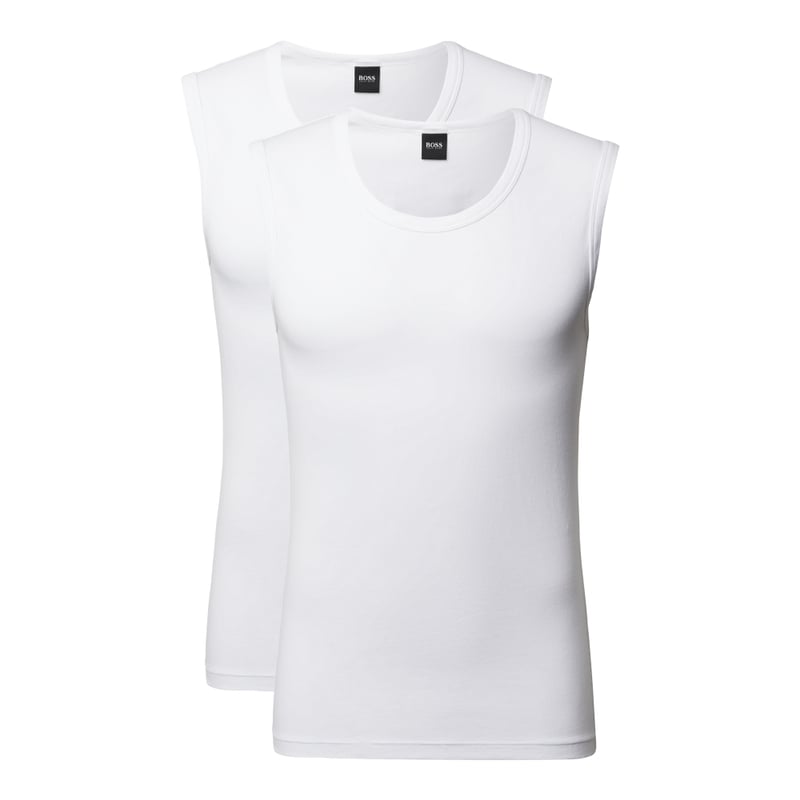 Podkoszulka męska BOSS, Mieszanka bawełny i elastanu, Krój slim fit, Okrągły dekolt, Bez rękawów, Zestaw 2 szt., Subtelny nadruk z logo