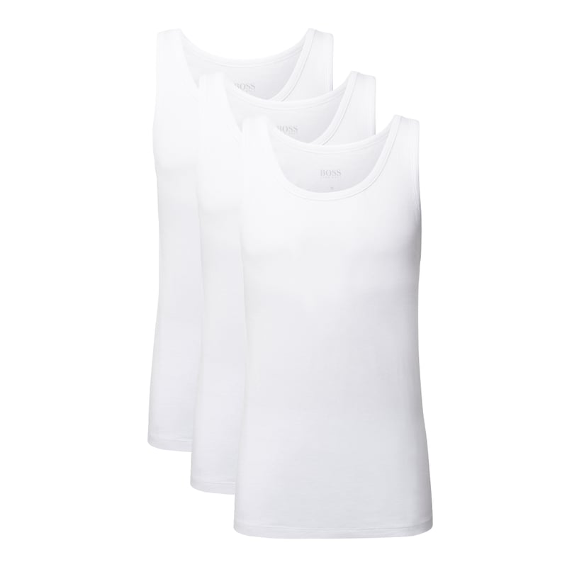 Top męski BOSS, Czysta bawełna, Model Tank Top 3P CO, Krój regular fit, Okrągły dekolt, Małe wyhaftowane logo na dole, Zestaw 3 szt., Długość tyłu w rozmiarze M: 68 cm
