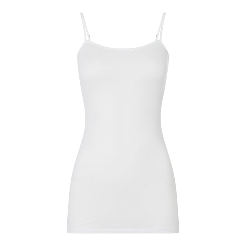 Podkoszulka damska HANRO, Bawełna merceryzowana, Taliowany krój, Okrągły dekolt, Cienkie, regulowane ramiączka, Szybkoschnący materiał, Długość tyłu w rozmiarze S: 63 cm