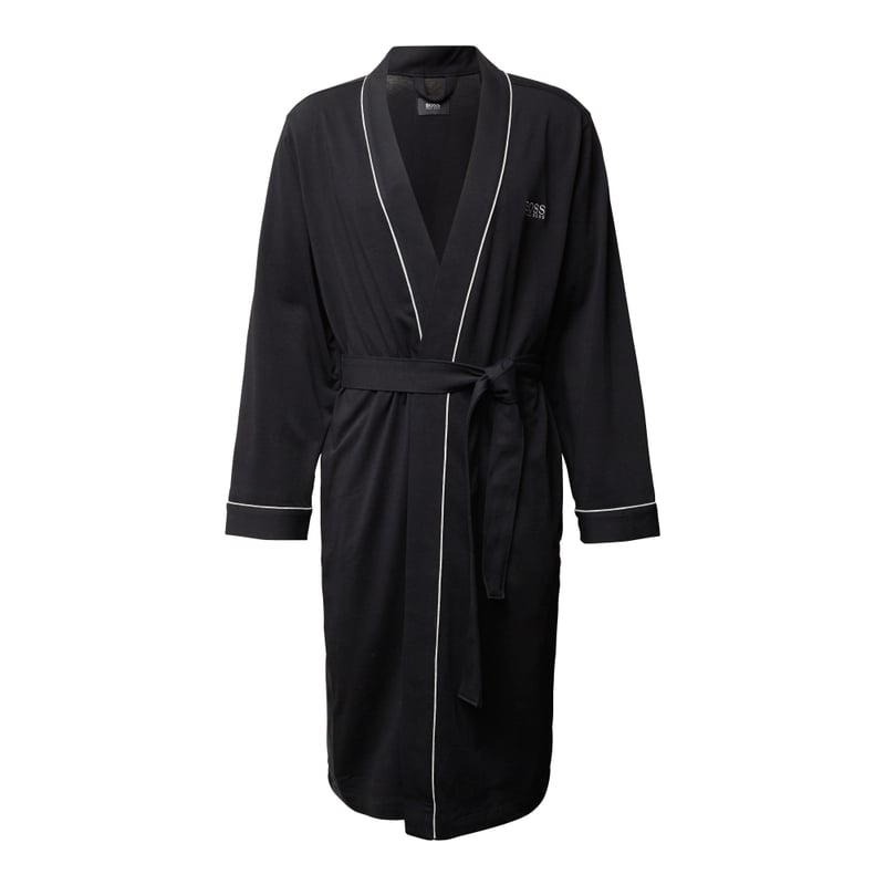 Podomka męska BOSS, Czysta bawełna, Krój bez zapięcia, Wypustki w kontrastowym kolorze, Wpuszczane kieszenie, Wyhaftowane logo, Odpinana taśma w talii, Przyszyte szlufki, Długość tyłu w rozmiarze M: 120 cm, Długość rękawa w rozmiarze M: 66 cm