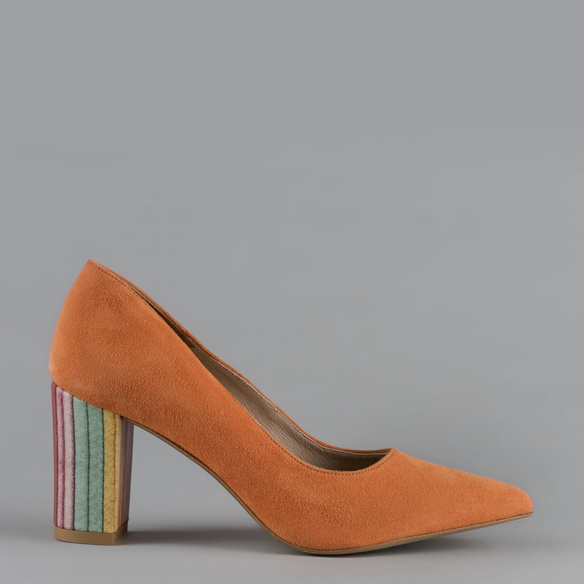 Pomarańczowe czółenka wykonane z wysokiej jakości skóry zamszowej, to model, który w swej uniwersalnej formie jest synonimem ponadczasowej elegancji. Ozdobny, niewysoki obcas zapewnia stabilność i pełną wygodę, a letnie akcenty w pastelowych kolorach to ciekawe dopełnienie wiosenno-letniej kreacji.