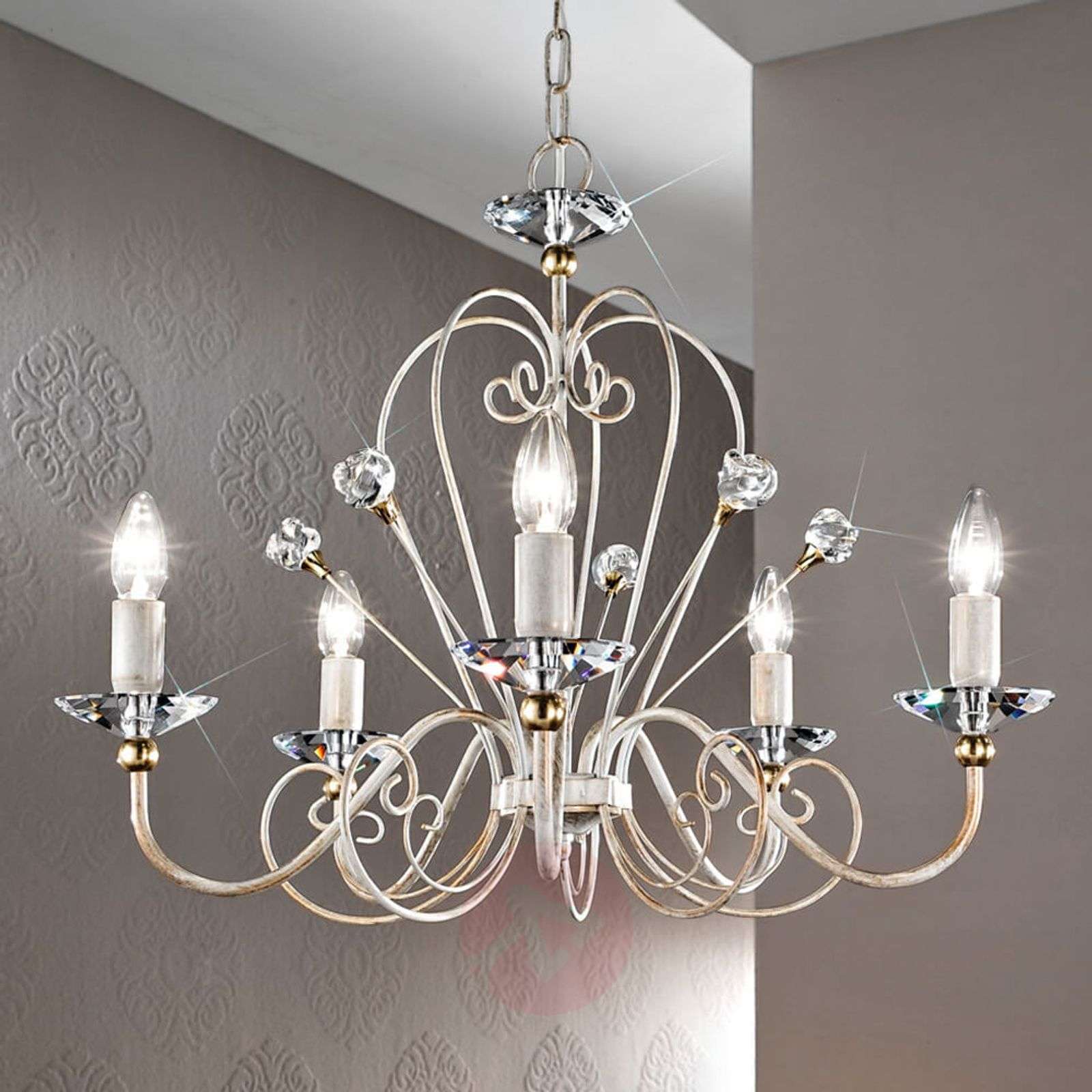 Żyrandol Rossana z wysokiej jakości kryształami spod znaku Kolarz Żyrandol Rossana wygląda bardzo delikatnie. Żyrandol urzeka delikatnie wykonanymi, kunsztownie wygiętymi elementami z metalu. Metalowe elementy w kolorze kości słoniowej i złota w połączeniu z kształtem robią nad wyraz klasyczne wrażenie. Imponujące są także wysokiej jakości kryształy Kolarz, które w postaci podstawek i małych różyczek są umieszczone na żyrandolu. Pełnią one nie tylko funkcję ozdobną i dodatkowo podnoszą wartość żyrandola, ale także przyczyniają się do powstania nastrojowego oświetlenia o jedynych w swoim rodzaju efektach świetlnych. Klasa efektywności energetycznej: A++