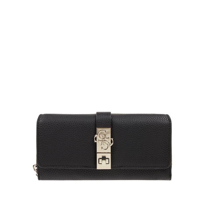 Portfel damski GUESS, Materiał skóropodobny , Zapinany na zamek błyskawiczny dookoła, Środkowa przegródka zapinana na zamek błyskawiczny , Dwie przegródki na banknoty, Dwadzieścia przegródek na karty , Przednia przegródka z zatrzaskiem, Dwie przezroczyste przegródki, Logo , Wysokość: 9 cm, Szerokość: 19,5 cm, Głębokość: 4 cm