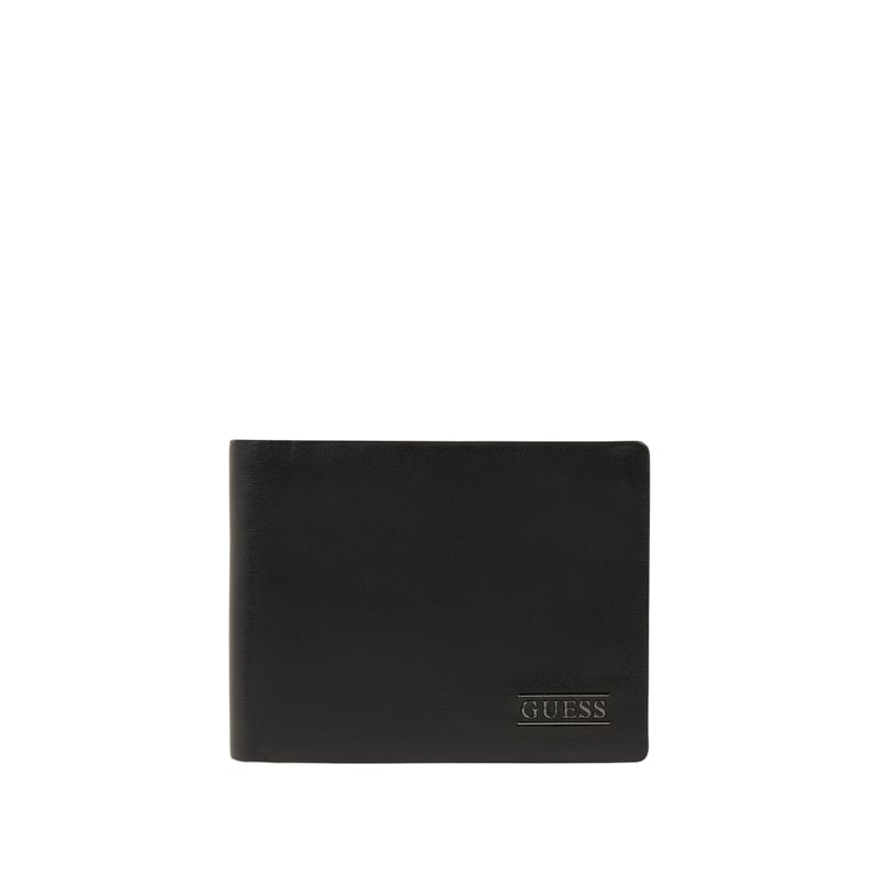 Portfel męski GUESS, Skóra naturalna, Przegródka na monety z zatrzaskiem, Cztery przegródki na karty, cztery zwykłe przegródki , Dwie przegródki na banknoty, Logo, Wysokość: 9,5 cm, Szerokość: 12 cm, Głębokość: 2 cm