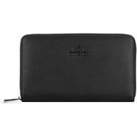 Portfel z kolekcjiCity LeatherCzarny portfel damskiw dużym rozmiarze, w całości uszyty z najwyższej jakości skóry licowej o groszkowanej strukturze. Oszczędność zdobień oraz klasyczny krój portfela sprawiają, że model jest doskonałym uzupełnieniem wizerunku nowoczesnej kobiety.Nasza rada: zorganizowane wnętrze pomoże posegregować karty oraz dokumenty. bardzo odporny na zarysowania portfel damskiwykonany z najwyższej jakości skóry cielęcej; portfel posiada zdobienie w postaciherbu WITTCHEN wytłoczonego w skórze; doskonale sprawdzi się również jako prezent – zapakowany jest w ekskluzywne opakowanie sygnowane logo WITTCHEN; wymiary: 12 cm x 19,5 cm; dodatkowo pomieści dowód rejestracyjny. Modelposiada: - 4 kieszenie na banknoty; - miejsce na bilon zamykane na suwak; - 16 miejsc na karty kredytowe; - 4 otwarte kieszenie, w tym dwie przezroczyste.