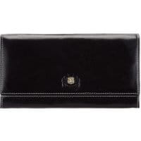 Duży portfel damski z kolekcji Roma Duży damski portfel skórzany wyposażony w przegrodę na bilon zamykaną na suwak oraz przezroczyste kieszenie na dokumenty. Ciekawy design i wysoka jakość zastosowanych materiałów to gwarancja ponadczasowej elegancji. Cechą charakterystyczną modelu jest logo - inicjały ozdobione tarczą w kolorze starego złota. miejsce na bilon zamykane na suwak; 3 kieszenie na banknoty; 8 miejsc na karty kredytowe, w tym 2 przezroczyste; 4 kieszenie, w tym 1 zamykana na suwak; zapakowany w ekskluzywne opakowanie - sygnowane logo WITTCHEN; wykonany z wytrzymałej skóry cielęcej; pomieści dowód rejestracyjny; wymiary: 10 cm x 19 cm.