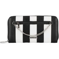Portfel damski w paski z kolekcjiYoung.Duży portfel damskiuszyty ręcznie z matowego, fakturowanego poliuretanu. Model zapinany na suwak ma poziomą orientację. Na wyjątkowy design zgodny z najświeższymi trendami składają się: kontrastowy duet odcieni, motyw w pionowe paskiorazmetalowe akcenty, w tym srebrny łańcuszek.Akcesorium występuje w dwóch odsłonach kolorystycznych: granatowo-niebieskiej oraz czarno-białej.Nasza rada: portfel świetnie prezentuje się w towarzystkietorebkiz łańcuszkiem. bardzo odporny na zarysowania portfel damskiwykonany z najwyższej jakości skóry ekologicznej; wymiary: 11 cm x 19 cm; dodatkowopomieści dowód rejestracyjny. Modelposiada: - miejsce na bilon zamykane na suwak; - 8 miejsc na karty kredytowe; - 3 kieszenie na banknoty; - 3 kieszenie, w tym jedna zamykana na suwak.