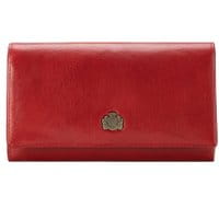 Klasyczny portfel damski z kolekcjiArizonaSkórzany portfel damskio poziomej orientacji, zapinany na zatrzask. Ręcznie wykonany z garbowanej roślinnie skóry licowej o naturalnym połysku. Wnętrze portfela obszyto poliestrową podszewką z zabezpieczeniem RFID. Elementy metalowe w kolorze starego złota podkreślają wyjątkowy charakter dodatku z nutą retro. Szykowne akcesorium do nabycia w czerwonym oraz czarnym odcieniu. bardzo odporny na zarysowania portfel damskiwykonany z najwyższej jakości włoskiej skóry cielęcej; wyposażony w innowacyjną podszewkę blokującą możliwość skanowania danych z kart; logo - metalowa blaszka z herbem WITTCHEN w kolorze starego złota; doskonale sprawdzi się również jako prezent – zapakowany jest w ekskluzywne opakowanie sygnowane logo WITTCHEN; wymiary: 10 cm x 16 cm; dodatkowo pomieści dowód rejestracyjny. Modelposiada: - dwie kieszenie na banknoty; - miejsce na bilon zamykane na suwak; - z tyłu kieszeń zamykana na suwak; - 7 miejsc na karty kredytowe; - 6 otwartych kieszeni, w tym jedna transparentna.
