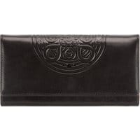 Portfel damski z kolekcji Mandala Duży portfel damski ozdobiony wytłoczonym na skórze symbolem harmonii i doskonałości. Portfel wykonany z wielkim kunsztem, kwintesencja szyku i elegancji. miejsce na bilon zamykane na suwak; 3 kieszenie na banknoty; 6 miejsc na karty kredytowe; 5 kieszeni, w tym dwie przezroczyste; doskonale sprawdzi się również jako prezent - zapakowany w ekskluzywne opakowanie; pomieści dowód rejestracyjny; wymiary: 10 cm x 18 cm.