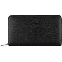 Portfel z kolekcjiCity Leather Czarny portfel damskiw dużym rozmiarze w całości uszyty z doskonałej jakości skóry licowej. Oszczędność zdobień oraz klasyczny krój portfela sprawiają, że model jest doskonałym uzupełnieniem wizerunku nowoczesnej kobiety.Nasza rada:zorganizowane wnętrze pomoże posegregować karty oraz dokumenty. bardzo odporny na zarysowania portfel damskiwykonany z najwyższej jakości skóry cielęcej; portfel posiada zdobienie w postaciherbu WITTCHEN wytłoczonego w skórze; doskonale sprawdzi się również jako prezent – zapakowany jest w ekskluzywne opakowanie sygnowane logo WITTCHEN; wymiary: 12 cm x 19,5 cm; dodatkowo pomieści dowód rejestracyjny. Modelposiada: - 4 kieszenie na banknoty; - miejsce na bilon zamykane na suwak; - 16 miejsc na karty kredytowe; - 4 otwarte kieszenie, w tym dwie przezroczyste.